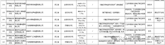 其中,在家用电动洗衣机品类中,不合格名单包括:广东小天鹅数码科技有限公司生产的全自动洗衣机(XQB100-118 10.0kg),广东小天鹅优品科技发展有限公司生产的全自动洗衣机(XQB85-588 8.5kg)涉嫌无CCC证书生产,广东天鹅洲智能科技有限公司生产的双桶洗衣机(XPB82-8006S 8.2kg/4.0kg),宁波蒲公英电器科技有限公司生产的全自动洗衣机(XQB35-198 3.5kg),宁波拓鑫电器有限公司生产的全自动洗衣机(TX-370 12.0KG)涉嫌无CCC证书生产。